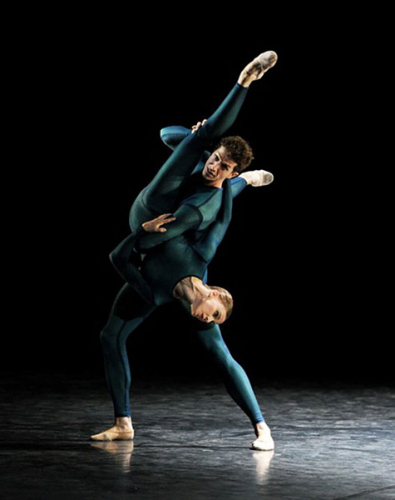• Douglas Lee, nun freischaffender Weggefährte Spucks, setzt mit seiner Uraufführung „Aria“ die ganze Kunst dieser beiden Tänzer in Szene, indem er Balancen auskostet, Bewegungen schichtet, Begegnungen akrobatisch zuspitzt. Im synchronen Nebeneinander und verwundenen Hebungen findet er zudem wunderschöne Bilder für den Abschied.